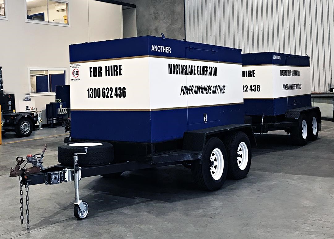 Macfarlane Generators trailer-mounted hire fleets are ideal for events,