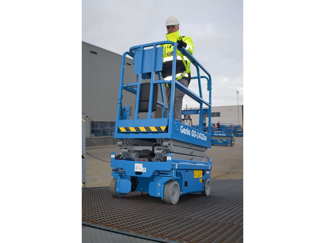 Designed for low-level access on sensitive flooring and space restricted applications, the Genie® GS™-1432m E-Drive scissor lift delivers quality and durability while improving total cost of ownership and productivity. It is equipped with an efficient, all-electric AC drive system that offers unmatched productivity for getting around indoor and outdoor jobsites in a compact, lightweight and versatile package.