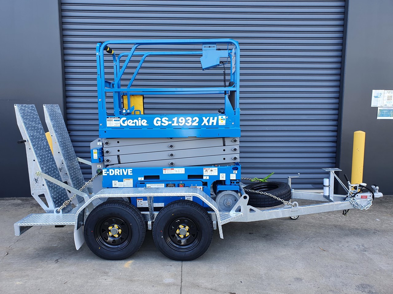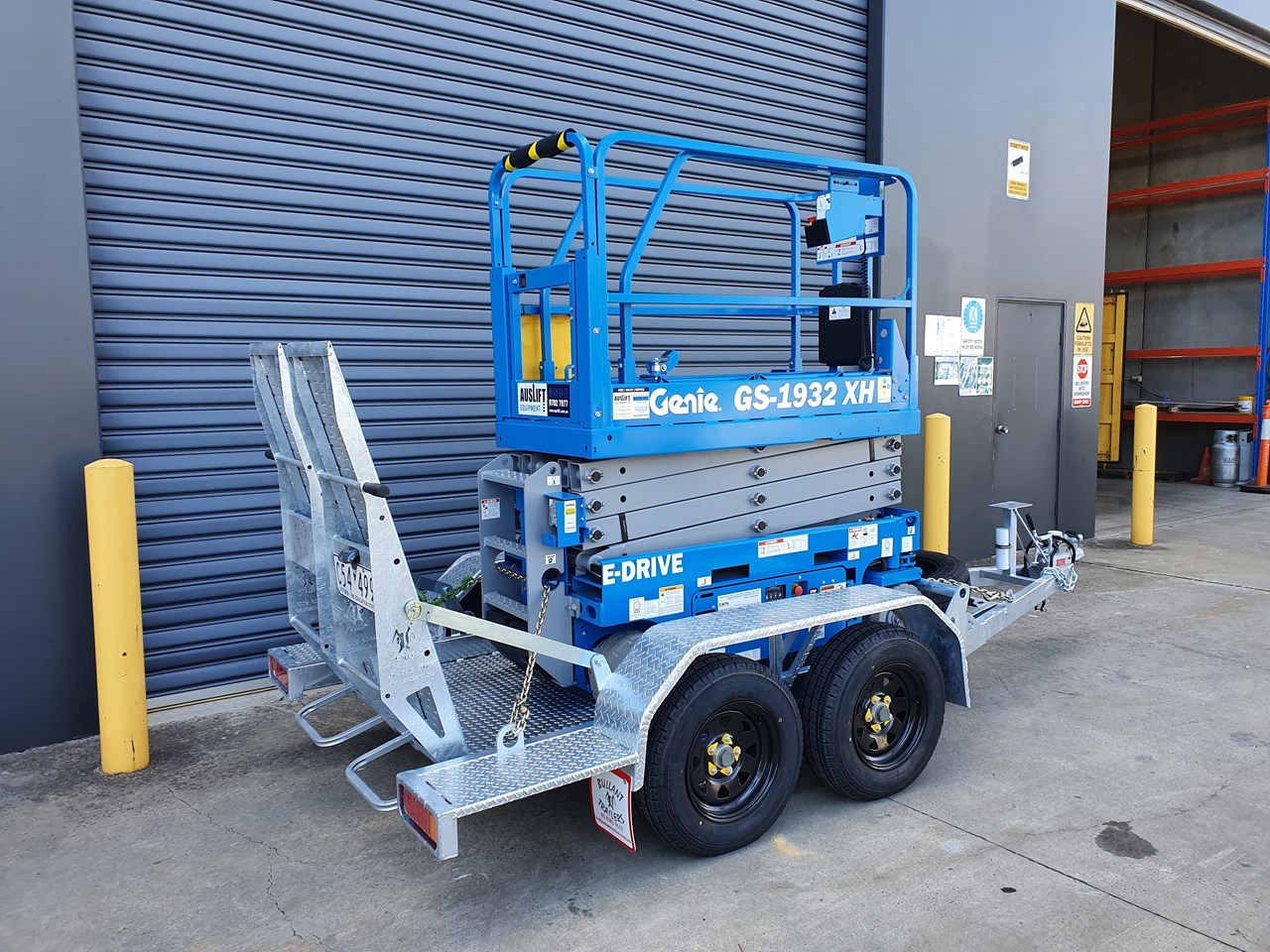 Hire a 19ft Electric scissor lift from Auslift and pick it up yourself on one of our quality bullant trailers.