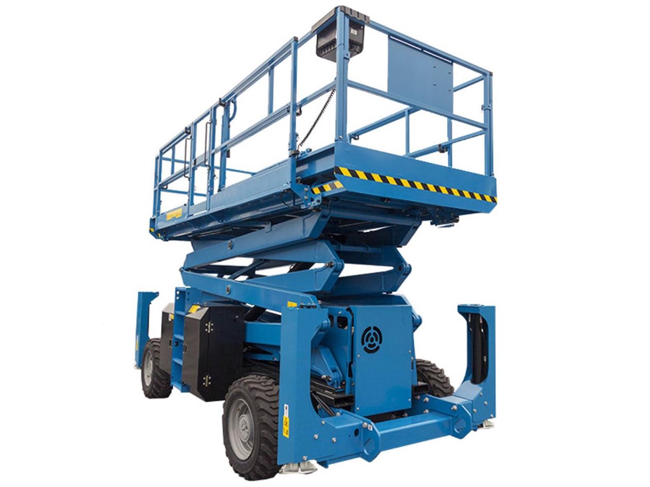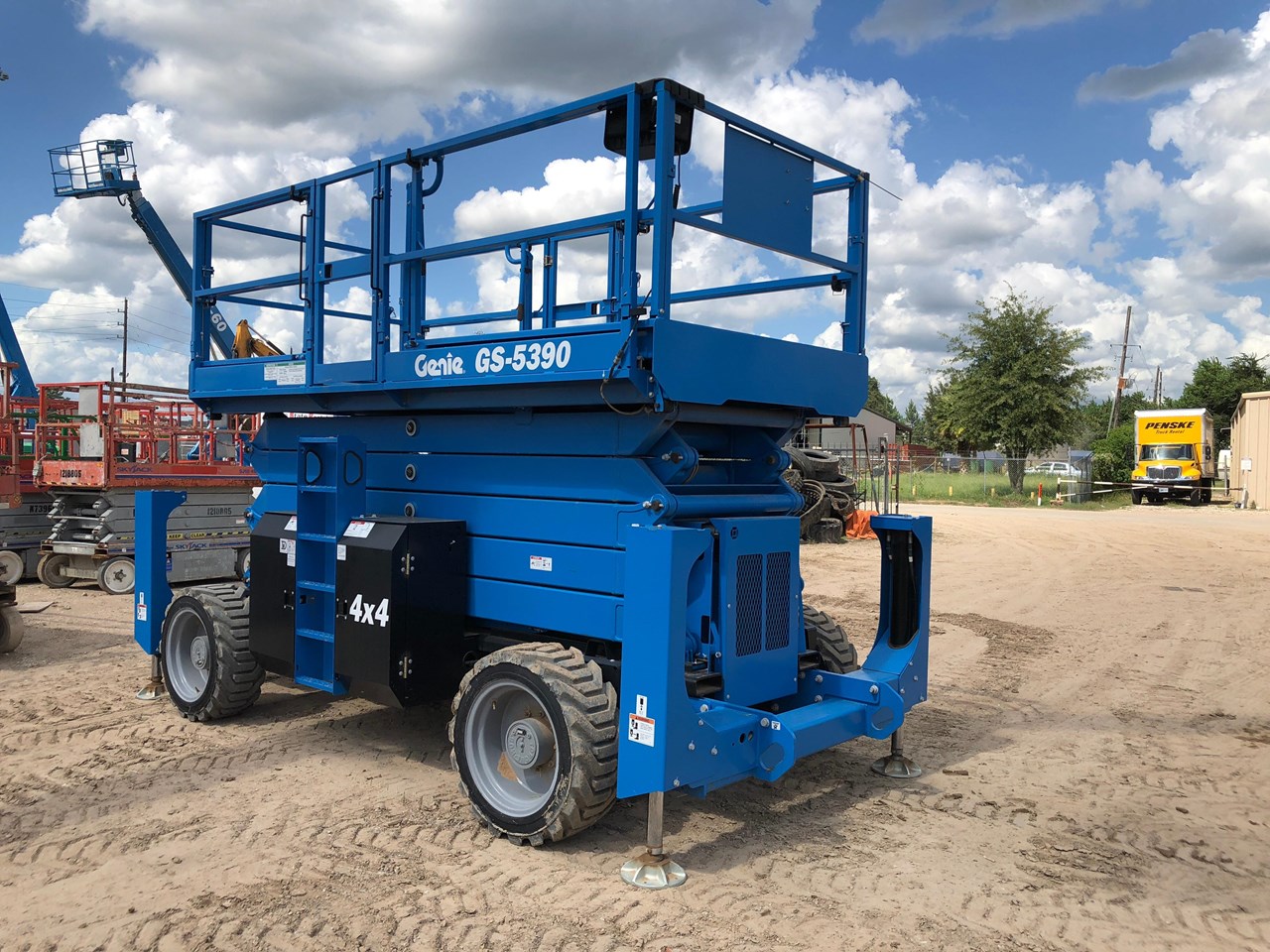 The Genie® GS™-5390 rough terrain scissor lift is built for extra-rugged performance and is able to traverse through uneven rough terrain environments.