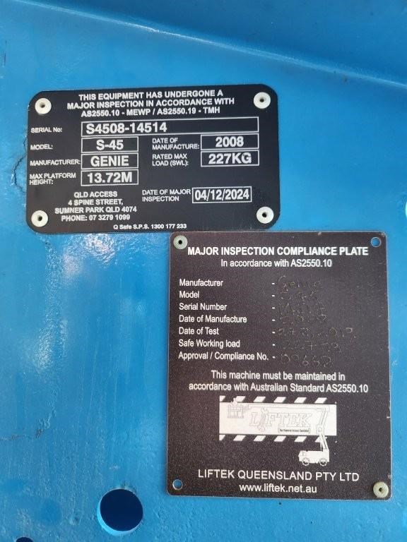 The Genie S-45 is a powerful 4WD diesel boom lift designed for tough outdoor conditions. With a platform height of 45 ft (13.72 m) and a working height of 51 ft (15.72 m), it delivers outstanding reach and performance. A horizontal outreach of 36 ft 8 in (11.18 m) provides access to difficult-to-reach areas, while the 5 ft (1.52 m) jib offers 135° of vertical rotation for added flexibility.