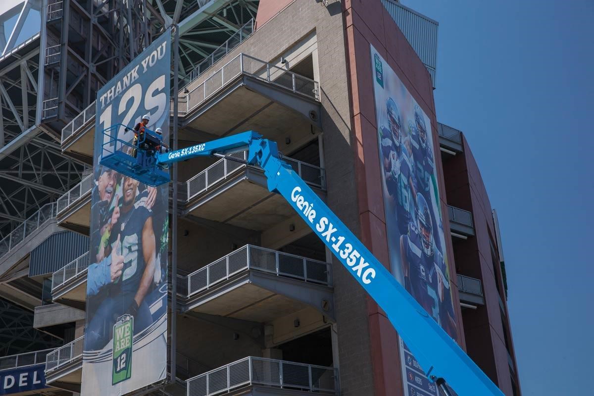 The Genie® SX™-135 XC™ telescopic boom lift provides 3 m (10 ft) more outreach and 32 per cent more capacity across its full working envelope than typical self-propelled booms of this size. Thanks to its unique up-and-over style capability, operators will easily navigate any obstacles at height.
