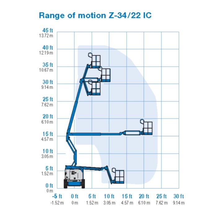 With a platform capacity of 227 kg, this lift can easily accommodate workers and their tools. The machine's durable construction and user-friendly controls ensure smooth, reliable operation. The Z34/22IC is designed to minimize maintenance and maximize productivity, making it a cost-effective solution for a variety of demanding outdoor and industrial applications. Whether you're working at height or need to access tight, awkward spots, the Genie Z34/22IC delivers the reach, performance, and durability you need.