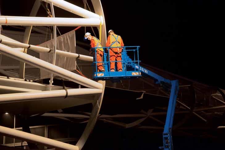 - 1.52 m (5 ft) articulating jib with a 135° vertical rotation to accurately position workers