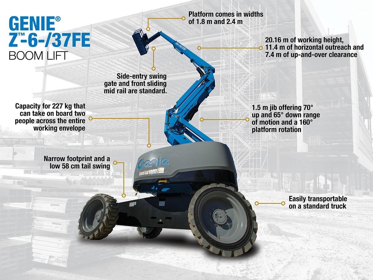 - Genie Fast Mast™ boom system allows operators to descend and retrieve materials and quickly return to working height