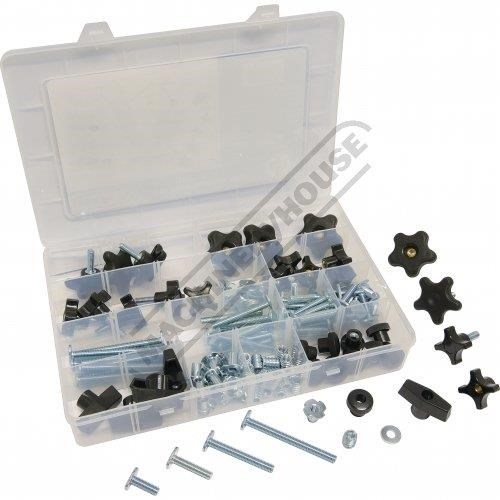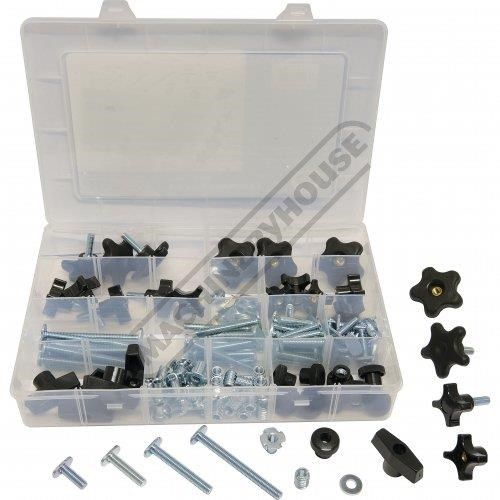 A complete assortment of the most popular Zinc Plated Steel T-Bolts and Plastic Knobs used for building or repairing custom jigs!