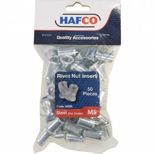 HAFCO Rivet Nut Inserts - M8 x 1.25mm Steel - Zinc Plated Qty 50 In Pack