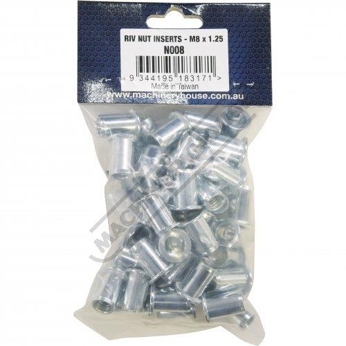 Rivet Nut Inserts - M8 x 1.25mm Steel - Zinc Plated Qty 50 In Pack