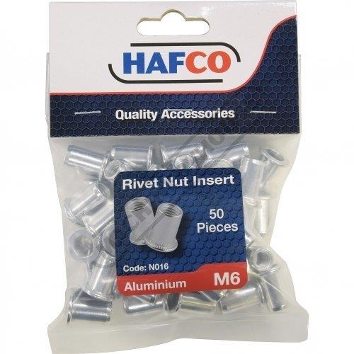 HAFCO Rivet Nut Inserts - M6 x 1.0mm Aluminium Qty 50 In Pack