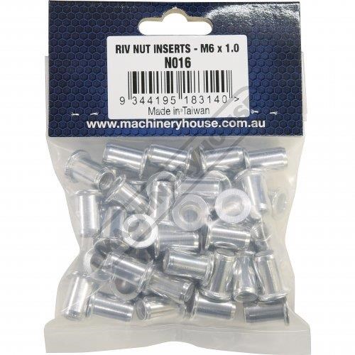 Rivet Nut Inserts - M6 x 1.0mm Aluminium Qty 50 In Pack