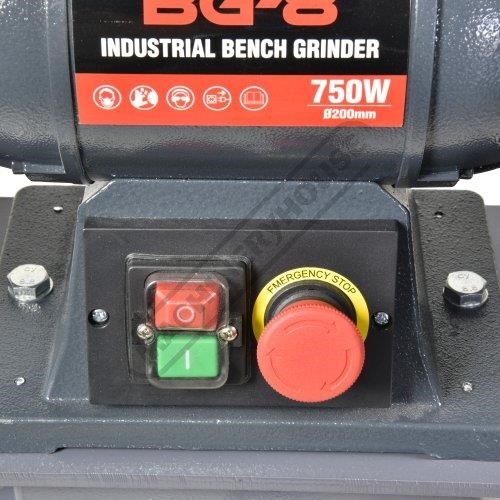 BG-8 Industrial Bench Grinder Ø200mm Fine & Coarse Wheels 0.75kW - 1HP Motor Power