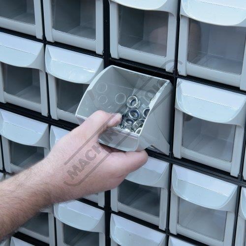 Quality fixed storage system for small components such as screws, bolts, tools, great for keeping your work area organised.