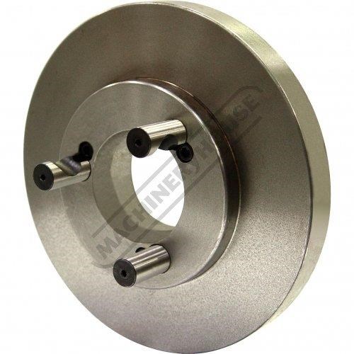 Cast iron back plate finished machined on one side to fit D1-4 spindle nose. The other face and outside diameter need to be machined to suit chuck size.