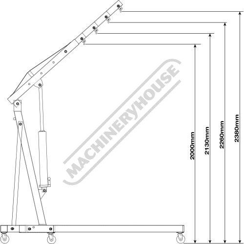 The long extendable jib has four positions with lifting capacity of 310kg, 625kg, 930kg or 1250kg to give you more reach & with the lifting height range from 0-2300mm so an engine can be lifted out of the engine bay with ease.