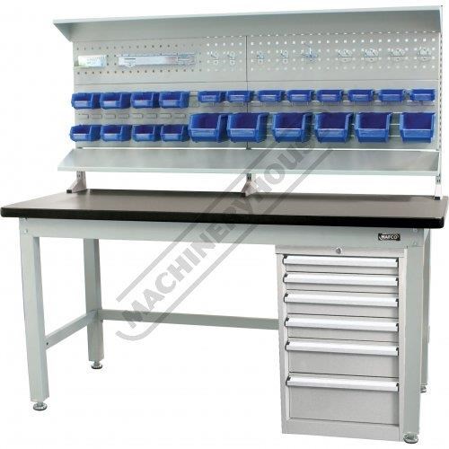 To complete the package a 6 drawer tooling cabinet designed to fit underneath the bench is another addition. Featuring a range of plastic boxes in the top drawer it would be ideal for the storage of small parts such as screws etc. The lower drawers incorporate movable steel dividers which allow you to configure the space to suit your application