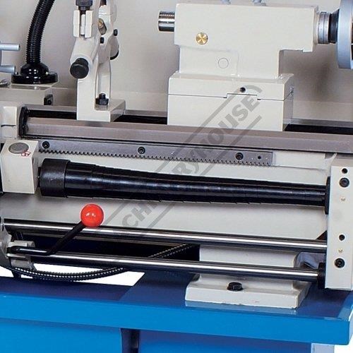 The 2hp single phase 240V motor is ample power to drive the 3 & 4 jaw chucks, auto feed & screw cutting thread system and the adjustable taper roller spindle bearings ensures accuracy & smooth operation even when under cutting load. A great range of cross, longitudinal feed speeds & metric & imperial screw cutting threads are easy accessible & selected via the separate gearbox located underneath the headstock for your convenience.