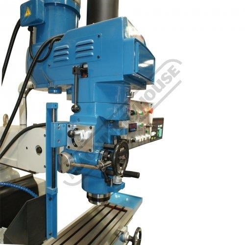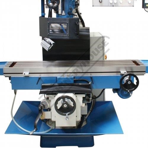 This milling machine package is also complete with a few of the most desirable features for example, 5hp motor driving the NT40 spindle taper, Inverter controller X & Y axis feeds, Z-axis powered elevating motor, pneumatic operated draw bar to easily & quickly change tool holders with a push of a button and automatic operated oil pump to keep slides in perfect working order.