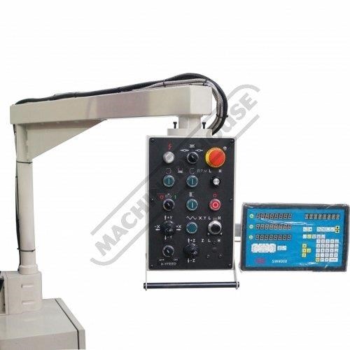 This milling machine package is also complete with a few of the most desirable features for example, NT40 spindle taper, Z-axis powered elevating motor, pneumatic operated draw bar to easily & quickly change tool holders with a push of a button and automatic operated oil pump to keep slides in perfect working order.