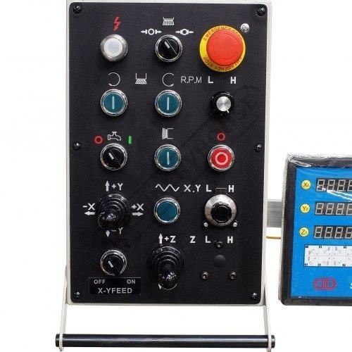 The BM-90HV machine also includes features like, 3-axis digital readout system fitted, turcite B coated X & Y slide-ways that reduces friction to provide smooth table movement even when loaded up with a heavy job, square constructed slideways on X & Z-Axis, Steel slideway cover on Y-Axis for maximum protection & an electric fan installed on the milling head to reduce excessive heat & maintain accuracy.