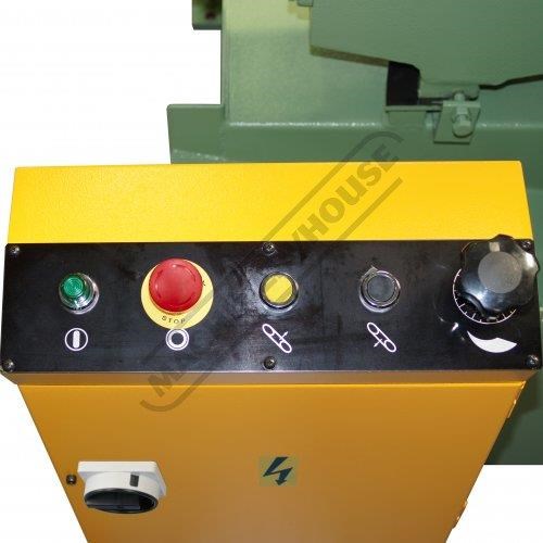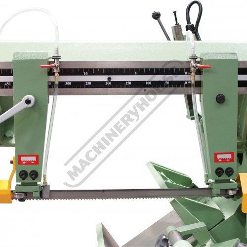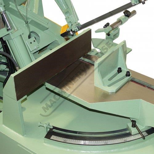 The cutting operation works automatically with the weight of the head providing the cutting force and a limit switch shutting the machine down when the cut is complete. The weight of the head is counterbalanced by an adjustable hydraulic damper to control the feed rate, an excellent machine choice for maintenance shops, steel fabrications, and engineering workshops. If you're looking for this size range of machine, you'll have a tough time finding a better metal-cutting band saw with these features and at this price, It represents excellent value.