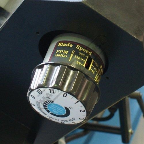 Adjustable variable blade speed system enabling 19-102mpm cutting speeds