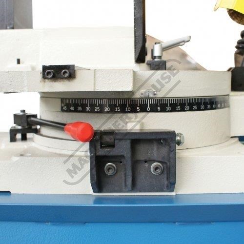 The cutting operation works automatically with the weight of the head providing the cutting force and a limit switch shutting the machine down when the cut is complete and automatically returning to set height position. The weight of the head is counter balanced by an adjustable hydraulic damper to control the feed rate, an excellent machine choice for maintenance shops, steel fabrications, and industrial engineering workshops. If you're looking for this size range of machine, you'll have a tough time finding a better metal-cutting band saw with these features and at this price, It represents excellent value.