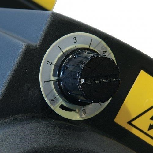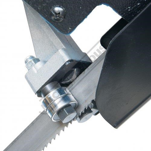The blade is firmly guided by double ball bearing and is driven via the direct drive motor fitted with variable speed, so the blade speed can be adjusted to suit the task in hand. The conveniently located hand trigger switch on the bow and a spring system supports the weight of the bow during operation. This is a compact and very well made machine and it can be relied on to deliver an accurate cut every time.