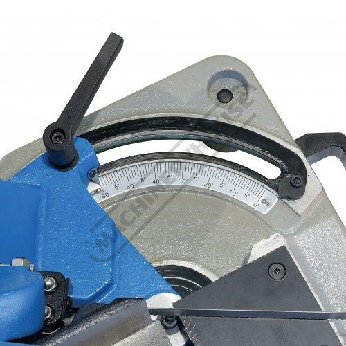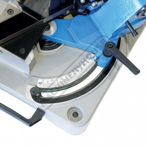 The BS-6V swivel head metal cutting band saw is the bigger brother from the BS-5V family and only 38kg it is still easily portable onto job sites. It is very suitable for the home model engineer where space may be tight but an accurate machine is required. Constructed mainly from cast alloy and steel, it has a very rigid bow that enables a high degree of tension to be applied to the blade and accepts a 19mm wide blade for durable & accurate cutting. The whole bow and motor assembly can be swivelled from 0° to 60° to create accurate mitre cuts.