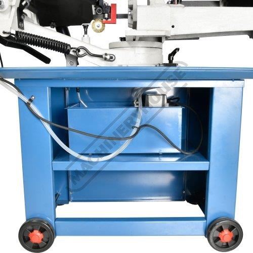 The BS-8DS medium-duty dual swivel head metal cutting band saw offers great value for money. The major points of this machine are the swivel head, four-blade speeds, adjustable feed rate, and built-in coolant system.