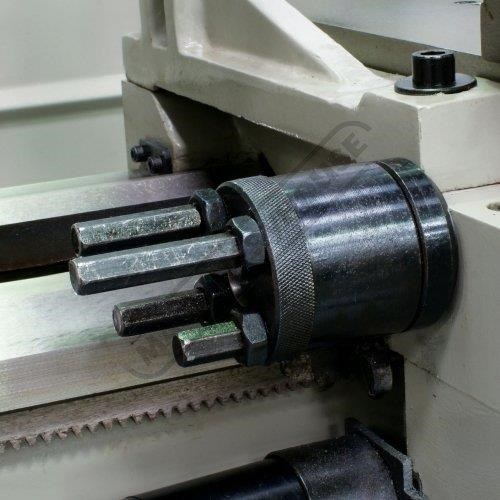 Adjustable 6 position length-stop on bed-way for accurate repetitive operation