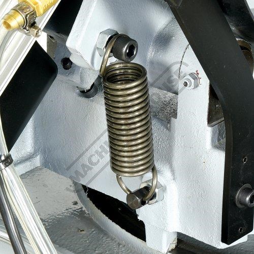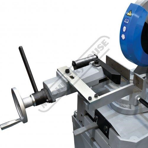 The MetalMaster manual cold saw head is well balanced and uses a long actuating handle giving the operator greater leverage and control to guide the saw blade through the work piece of tubing or pipe etc, with ease and utilises a quality head retraction system for returning the cold saw head to the start position. The vice clamps the workpiece on both sides of a cut, which extends blade life because the cut off does not drop into the blade.