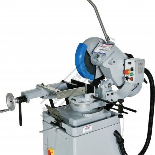 The latest 240 volt Hafco MetalMaster manual cold saw consists of a 350mm circular saw blade that can run at 24 to 120rpm via a electronic variable blade speed control and also incorporates a coolant system with an adjustable flow control valve. These cold saws are designed to cut at 90º, or mitre up to 45º in either left or right side of the material simply by releasing the lever located at front of machine and swivelling the head to the desired angle. Each machine comes standard with a very heavy and strong cast iron frame base with a cast dual pivot saw head supported by an industrial swivel base system, which makes this MetalMaster cold saw one of the most rugged machines on the market.