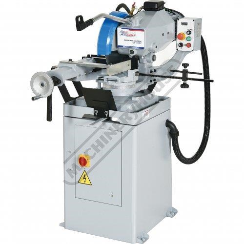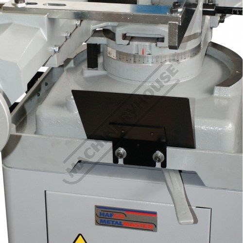 The latest 240 volt Hafco MetalMaster manual cold saw consists of a 350mm circular saw blade that can run at 24 to 120rpm via a electronic variable blade speed control and also incorporates a coolant system with an adjustable flow control valve. These cold saws are designed to cut at 90º, or mitre up to 45º in either left or right side of the material simply by releasing the lever located at front of machine and swivelling the head to the desired angle. Each machine comes standard with a very heavy and strong cast iron frame base with a cast dual pivot saw head supported by an industrial swivel base system, which makes this MetalMaster cold saw one of the most rugged machines on the market.