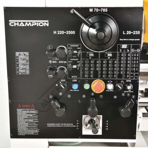 The Variable Speed Champion lathe offers a spindle speed of up to 2500 RPM and features a constant surface speed function (CSS) that adjusts the spindle speed automatically to maintain a constant cutting speed between the tool and the workpiece surface. It is especially useful for achieving consistent finishes and efficient cutting during operations like turning, facing, or tapering.