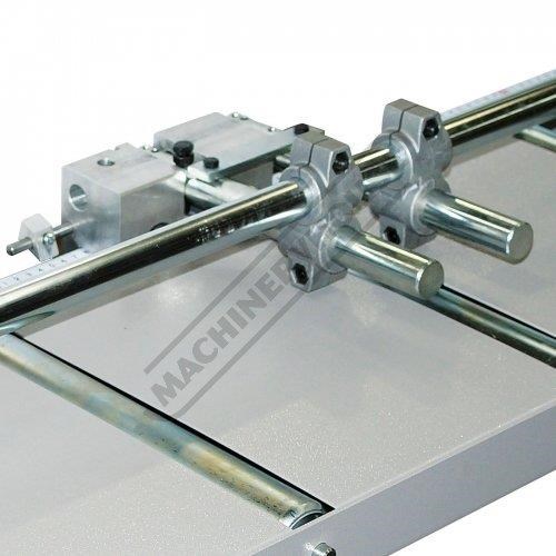 - Material length stop on ball bearing slide with flip over design