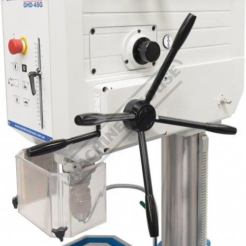 The GHD-45G is a heavy duty Industrial Geared Head Drilling Machine that has it all, and if you are wanting to drill small holes up to large holes, then look no further as this will be what you will need in your engineering workshop. With a hefty 4 morse taper spindle that can travel a huge 180mm in depth, and the extra-large head to house in those big drive gears with 8 speeds to drill through the toughest steels with ease. This machine also features an automatic drilling feed system, so you do not need to use human force at all to drill any holes.