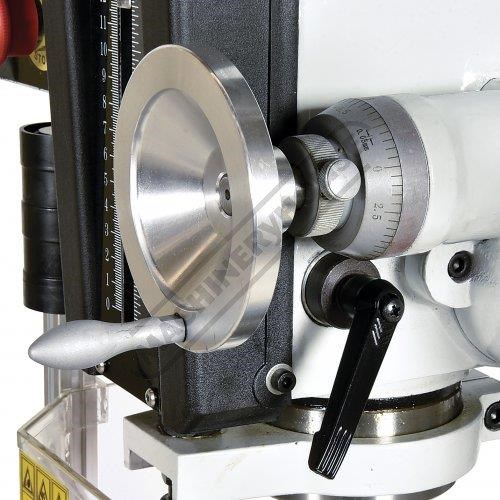 The fine downfeed control can be locked firmly in position when milling and the mill also features an easy-to-read depth stop.