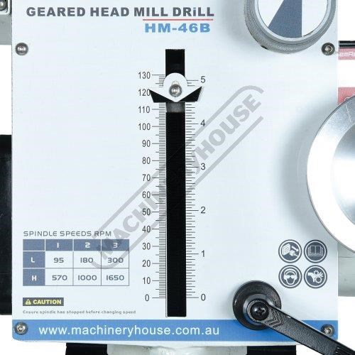 HM-46B Mill Drill - Geared & Tilting Head - 415V Table Travel: (X) - 485mm (Y) - 175mm (Z) - 430mm I