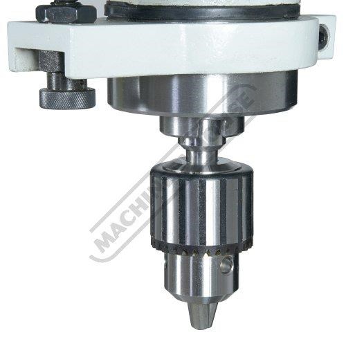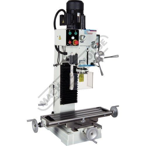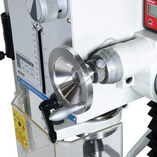 The usual handle-driven down feed is available for precision drilling and there is a fine manual down-feed control for precise vertical milling.