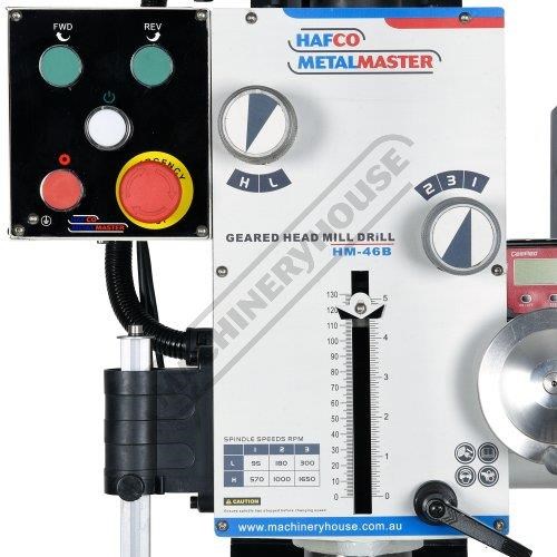 HAFCO-METALMASTER HM-46B Mill Drill - Geared & Tilting Head - 240V Table Travel: (X) - 485mm (Y) - 175mm (Z) - 430mm Includes Digital Readout System & Dovetail Column