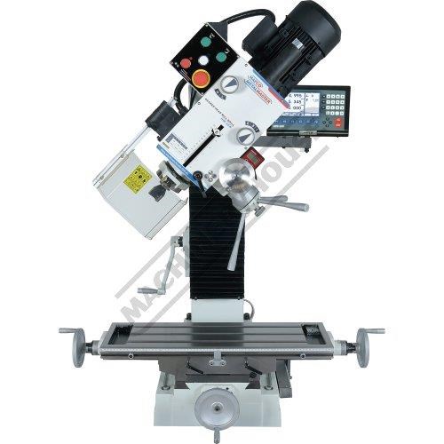Mill head tilts to ±90º from vertical with digital display