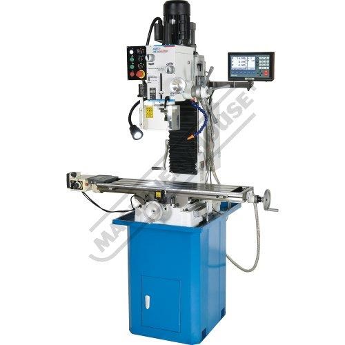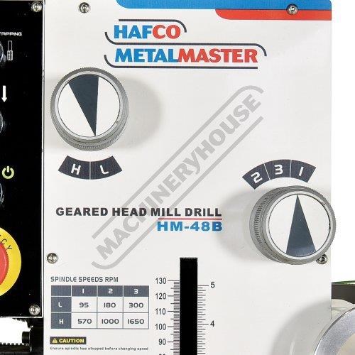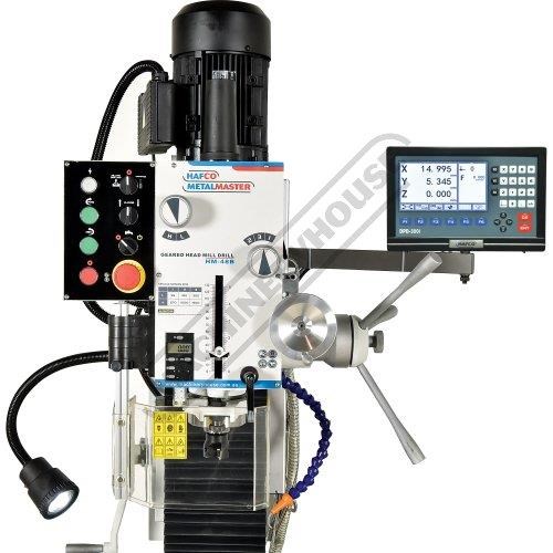 HAFCO-METALMASTER HM-48B Mill Drill - Geared & Tilting Head with Digital Readout System Table Travel: (X) - 670mm (Y) - 205mm (Z) - 380mm Includes Digital Readout System, Dovetail Column, Power Feed & Stand