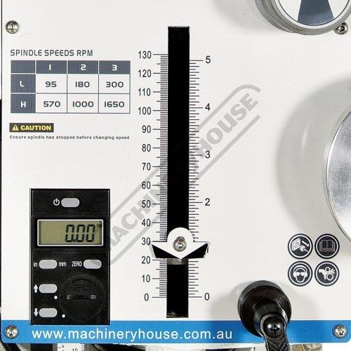 The quill movement is also coupled to a digital depth counter mounted on the face of the machine for convenience and allows you to achieve accurate drilling or milling depths. Tilting the head can be also measured accurately via the digital head gauge mounted on the right side of the mill head.