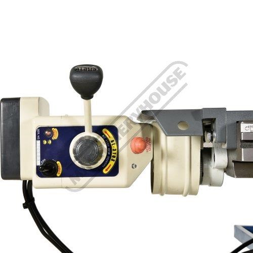 The HM-48B also has a tapping function switch to allow you to control the required depth when tapping holes, a coolant pump system with flexible hose & nozzle, a LED work light on a flexible arm to adjust the light beam as needed and a very sturdy fabricated stand with an access panel.