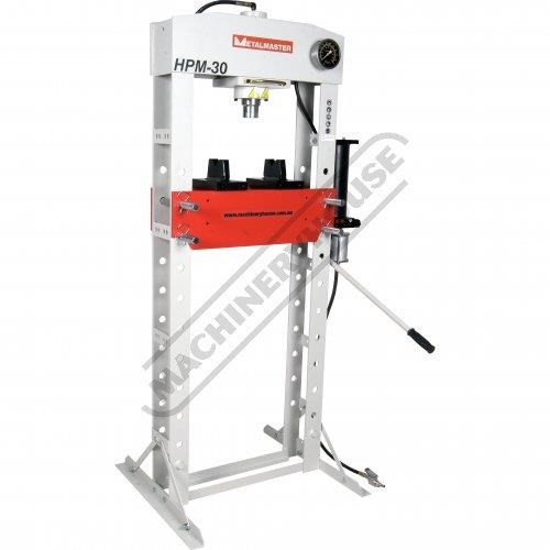 METALMASTER HPM-30 Trade Hydraulic & Pneumatic Press - 30 Tonne Robotic Welded Steel Frame Construction Includes Adjustable Sliding Cylinder Ram, Pressure Gauge & Bending Vee Blocks