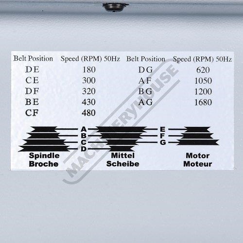 9 Spindle speeds - 180 300 320 310 430 480 620 1050 1200 1680rpm