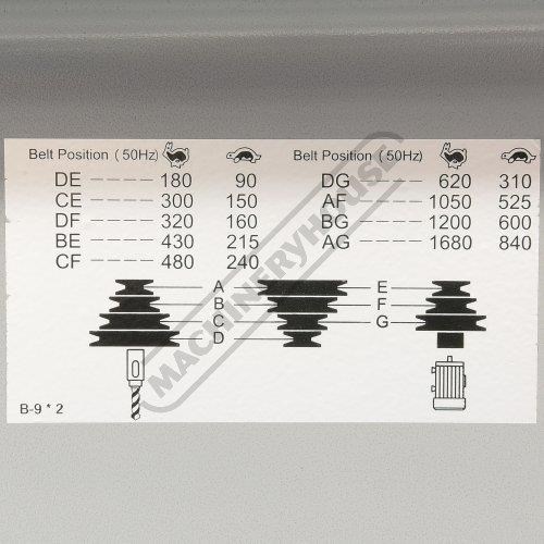 18 Spindle speeds 90-180 150-300 160-320 215-430 240-480 310-620 525-1050 600-1200 840-1680rpm