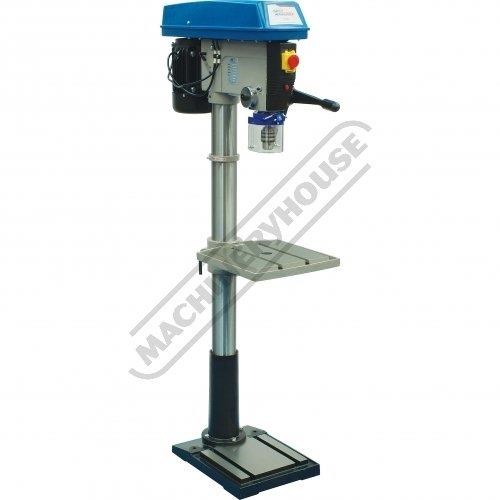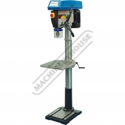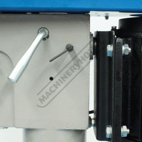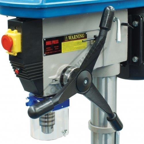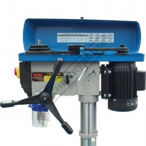 Mostly constructed from cast iron and machined steel to provide superior stability and strength. Powered by a 1.1kW, 1.5hp, 240-volt induction motor and coupled to a 12-belt speed pulley system offering wide range of speeds between 150-2450rpm. The down feed handle is also made from cast iron in one solid piece design and fitted with soft hand grips for your comfort & convenient drilling depth feed control.
