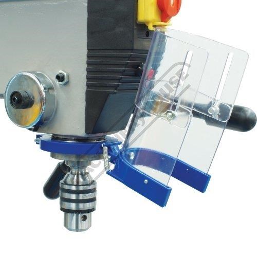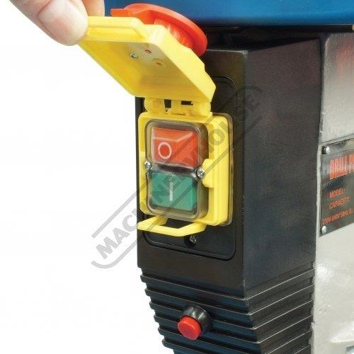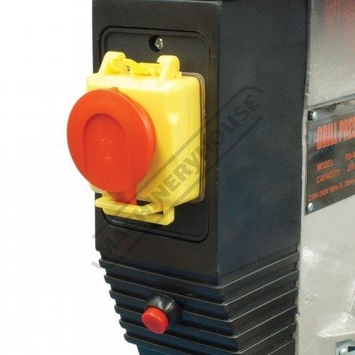 The magnetic safety switch with emergency stop is conveniently front mounted for quick access. The drill also includes an adjustable safety drill chuck guard and the belt cover is equipped with a safety switch to ensure safe belt speed changing.