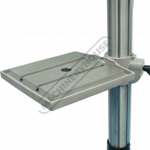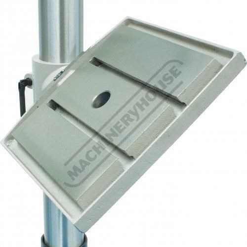 The drill quill is equipped with a 3 morse taper spindle allowing you to fit 3MT drill bits directly to the spindle or 1-2MT drill bits with optional adaptors. A quality Ø3-Ø16mm keyed drill chuck with 3MT arbor is included & fitted. The drill table can tilt left or right, and the height is also easily adjusted up or down via rack & pinion hand lever & can be locked into position. Furthermore, the whole table assembly can be swivelled away to allow the machined base to be used as a work support.